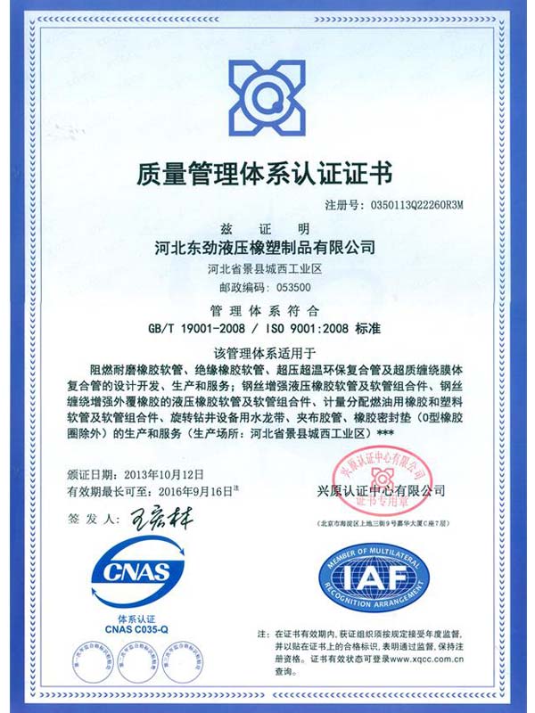 • 鋼絲編織管采用國際標準認可認可證書